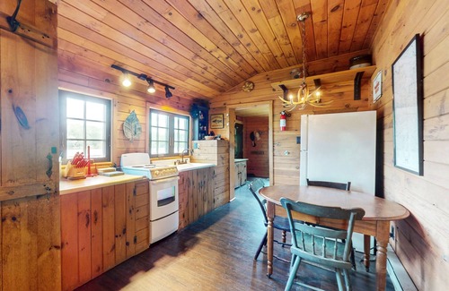 please note that the baseboard heat and fireplace are not for guest use Also, the property requires stairs, walking on uneven ground, and wooden walkways for entry access which may need more mobility for guests with limited mobility.