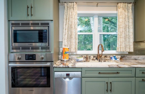 head up the steps to the front porch A bistro table with attached Adirondack chairs is the perfect spot to begin your day, sipping coffee. Enter the front door and be impressed with the open floor plan, vinyl plank flooring throughout. The great room has a kitchen, dining and seating area. The kitchen features Bosch stainless steel appliances, quartz counters and custom cabinetry. The cabinets have frosted glass fronts, soft touch pull-out drawers, and Lazy Susan. The French drawer refrigerator has an automatic ice maker. There is an oven, built-in microwave and Cuisinart toaster oven. Make vacation meals atop the induction cook-top. The round dining table comfortably seats six. A perfect spot for the family to enjoy meal time. The living area has a intimate seating area with loveseat and two swivel chairs. A 50" Smart TV allows you to stream in your Netflix account. Off the living area is the expansive sunroom. Surrounded by three walls of windows, this room is a relaxing oasis. Watch the beauty of Seabrook Island from the comforts of your cottage. A large sectional sofa and ding table for six complete this space. A door leads out to the grilling deck and back stairs.