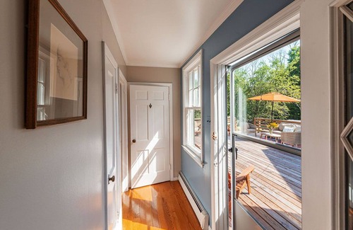 watch the changing light from new solid wood deck overlooking the pond in perfect ecological balance Dive from ancient flat stones into 10 foot water or just sunbathe. Explore, walk and meditate on large glacial rocks off trails in woods behind house.