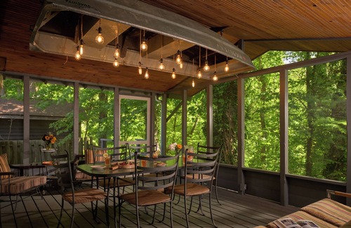 come experience the 4-bedroom, 4-bath mid-century river's edge house at goldberry woods, sw michigan's #1 rated property! a select registry property featured in midwest living, conde nast traveler, washington post, chicago magazine, chicago/metro parent magazine, and more Stay in the heart of Harbor Country on 30 secluded acres of woods with hiking trails, kayaking on the river, orchards, organic farm, and prairie less than one mile from the beaches of Lake Michigan! Please see our goldberrywoods site for more details/pricing. Available for your friends/family getaway, holiday, reunion, or corporate retreat! We added a new pool and hot tub for the property (shared with our other cottage and inn --but lots of room for everyone). We also have a new barn venue that overlooks the pool--great for groups/weddings/reunions or rent for your private pool house. Pets welcome.
