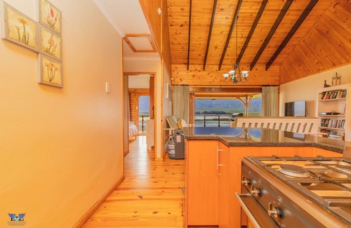 The luxury log cabin is situated in a bird sanctuary on the outskirts of Stanford overlooking the Klein Rivier It is raised on stilts allowing for one of a kind views of beautiful wetlands, mountain ranges and surroundings. As rainfall throughout the year isn't consistent the water levels change at will. This means that you will either have a massive body of water enabling you to use the canoe or peddle boat or a dried up pan perfect for walks to the river. The view is never the same. You will be welcomed by our property manager Simba and his wife, Rachelle will be happy to assist with cleaning at extra charge to guest.