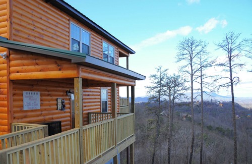 we chose this location because of its solitude and convenience to all of the attractions, restaurants and shopping This two story log cabin is set up with openness and convenience you'll never want to leave and the mountain views will capture your heart! The cabin setting is quiet with the only noise being the Dollywood train whistle and local wildlife going about their day. The cabin has a buffer of trees, except of course for the clearing of the view. It is on the end of a cul-de-sac with very few other cabins. You avoid the feeling of being in a development with so many other cabins close together surrounding you. The only congestion you will find here is on the Parkway and we have many suggestions as an alternative. You come to get away and enjoy the mountains so why not with a little peace and solitude. The moment you arrive is time to enjoy the mountains, make some memories, and perhaps have S'more.