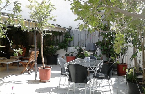 Hi, we look forward to welcoming you into our home (I am a New Zealander and my husband Yiannis is Greek). We are on the third floor (roof top), in a traditional and pretty suburb. We are slam bang in middle of all the important places you are going to want to get to. Our house is a bright, airy, mix of styles. We want you feel free and at home here. Although we are in the center of a busy city, we have built an oasis of privacy with a tall picket fence and lush greenery. We have birds visiting us and you can hear the local birds through-out the day. Our house is an eclectic mix of traditional, arty and colorful objects. It is light and airy. The veranda is approx. 55m2 and is a paradise, perfect for the morning coffee and late night drink to unwind. It is also very safe if you have children. The 2nd bedroom is also accessible from the lounge, it has a frosted glass door and curtains on that side to ensure privacy. There is everything you could possibly need in the house, from juice maker to bread maker, all cooking/serving dishes, plenty of books to read, some games, stereos etc..
