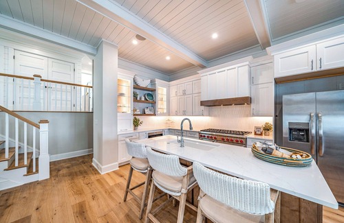 this thoughtfully designed 5-bedroom, 45-bathroom home is perfect for creating cherished family memories. Two king bedrooms serve as luxurious primary suites, each featuring en-suite bathrooms with double vanities for a spa-like experience. A queen bedroom also includes an en-suite bathroom and private deck access, while the spacious bunk room accommodates up to eight kids, making it the ideal space for younger guests. Need extra sleeping space? A queen air mattress is provided for your convenience. While there’s no gas or barbecue grill, the fully equipped gourmet kitchen is ready for preparing delightful family meals.
