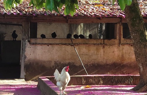 Our property is located on the outskirts of the fishing village of Mondoukou (also called Asséoufoué), a district of Grand Bassam. It is a mixture of small farm and tropical garden with several residential and utility buildings, free-range chickens, its own vegetable garden, coconut palms, mango, almond, cashew trees, passion fruit... depending on the season for harvesting on the doorstep. Our bird world is correspondingly diverse.
