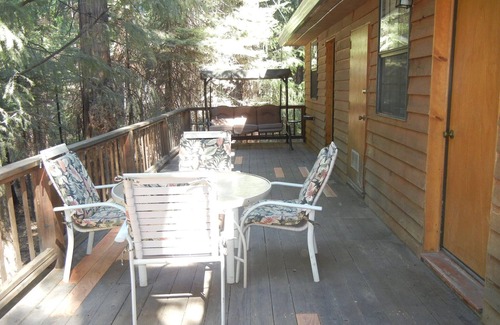 35 miles from Kirkwood Ski Resort this 4 bedroom - 4 bathroom wooden cabin is perfect for family/group gatherings. Sleeps 9 with a full kitchen, large screen TV with 100 free DVD/Bluerays to watch. Free internet access and a recent total remodel of the rooms and living room. Fireplace/stove for a warm winter setting. Back porch overlooking large pine trees enclosing the property. Restaurant and full bar next door that is part of the facility..