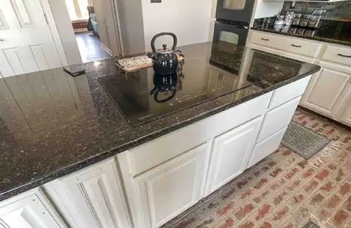 brand new custom rustic brick kitchen floor Stone Fireplace, Granite, Tile and Wood Floors throughout this Monstrous home. Over 4500 square feet available as of March 2023.