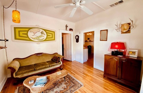 the space is rustic and quirky, and remember, built in 1905 so nothing fance will be found here~ it is furnished with an eclectic variety of furniture from around the country and the world, and every piece has a backstory Some are based in fact, while others may be complete fiction, but everything is intended to inspire the imagination. If you are looking for a fully renovated space with big-box upgrades, oversized sofas, and fancy gadgets, this house is definitely NOT for you. The Yacht Club is a true Bisbee experience, where you can surround yourself with 120 years of history.