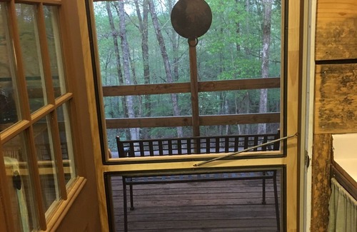 Located in the middle of our family farm. Very secluded. Peace, quite and wildlife. I have a lake that I allow guests to fish in. Cabin is 750 sq feet with a wood burning stove and AC. Hotpot on personal cell is how Wi-Fi is accessible. Good cell coverage..