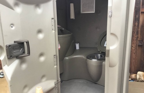 Cement garage driveway with 50 amp plug-in/water hook up. Sewer disposal available through mobile vendor. Access also available to all the cabins amenities when it is unrented, to include the pool, spa, volleyball, badminton, and Pickleball. Access also to outdoor showers and flushable Porta potty’s! We are in the heart of the Big Belt Mountains of Montana..