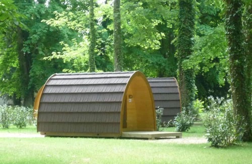 le pod est équipé d'une chambre et terrasse avec vue sur le canal, d'un chauffage et d'électricité