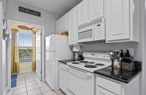 🍲 full size kitchen, dishwasher, range/oven, microwave, refrigerator w/ice maker, utensils, pots, pan, dishes, pantry, electric grill everything needed to make eating in, as easy as being at home