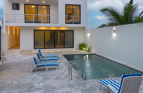 the design is a perfect combination of traditional coastal style and avant-garde modernity, with large windows that allow abundant natural light to enter The common areas include a plot for family gatherings, ideal for preparing delicious meals while enjoying the view of the pool, and a pleasant sunset with the sea breeze.