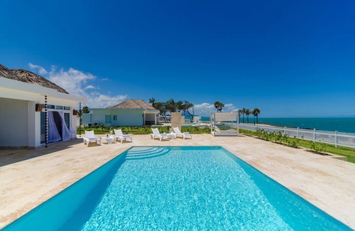 Sea-views 4BD villa on sandy beach, private pool & golf cart, gym/tennis! | Villa in Sosúa