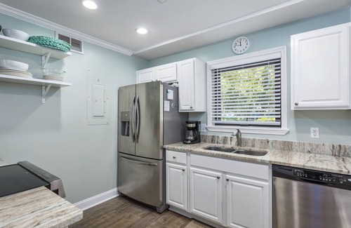 Relax in style at this peaceful beach villa with golf views. Enjoy your meals alfresco with this furnished covered patio and convenient outdoor seating area for relaxation. Snuggle up on the couch and watch something fun on this flatscreen tv or channel your inner chef and prepare a masterpiece of a meal in this fully-equipped kitchen. Family friendly villa with folding crib, highchair and toys. Walking distance to the Beach Club, this newly updated Villa is sure vacation spot. Amenities cards are required for pool usage but not to enter the beach access.