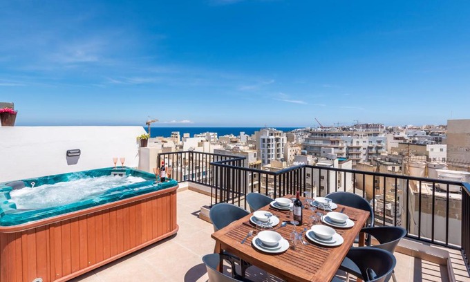 Seashells Sea View Penthouse with private Hot Tub & large sunny terrace with stunning views - by Getwaysmalta is located in St. Paul's Bay.
