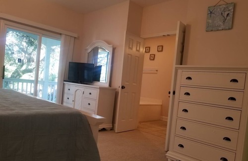 *second floor master suite with king bed, spacious deck & private bath with soaking tub