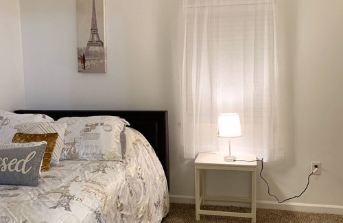 beautiful, clean and comfortable space with 2 separate rooms, one room is an enclosed bedroom and the other room can be used as another bedroom or living room Living room area has roll out trundle daybed. Home has full bathroom and home sleeps up to 4 guests. 2 Roku TV’s and free Wi-Fi available, also many amenities for a comfortable and relaxing stay. No Smoking inside GuestHouse, all smoking outside thanks. Home is newly renovated and cleaned and sanitized after every single guest. Feel free to use all available toiletries and personal care products in home, they are for your use. (P.S. You may park on the driveway on the right side of the house. you may also pull all the way up to the front of the guesthouse but only if grass isn’t muddy, thanks!)