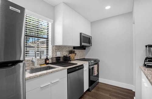 fully equipped kitchen with modern appliances and all cookware included