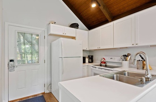 Kick back and relax in this calm, stylish Night Heron home. Recently renovated and ready to fit your family for an island getaway. A fully equipped kitchen, and brand new deck overlooking the lagoon will give you the perfect spot to enjoy a morning coffee. The loft has 2 twin beds and over looks the living room. The master bedroom with an ensuite bathroom features a king bed, and the other main bedroom has a separate bath with a queen bed. book with us to experience the best of coastal living!