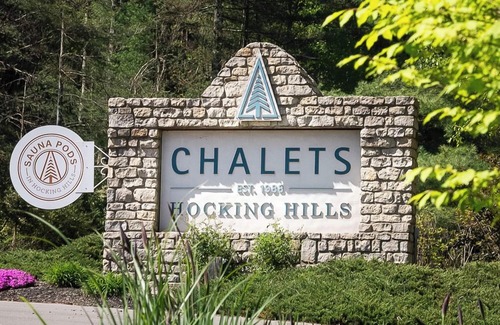 Here’s your home in the country – with a wide front porch and a picture window, from which to take in the sunset over beautiful, bucolic Hocking Hills. The log home has a charming full kitchen and one full bath. The log home with saltbox roof is one story, so both bedrooms are on the ground floor: one has a queen bed and the other a full bed. Some of the furnishings lend an old-world charm. The focal fireplace has a broad hearth and mantle, with satellite tv. Wifi is available at this location and pets are welcome. INCLUDED All of the Chalets include: a scenic setting; outdoor hot-tub; fireplace and grill; kitchen with cooktop, microwave, coffee maker, cooking utensils and tableware; satellite tv with dvd player; bed, bath and kitchen linens with bath soap and dish soap; toilet paper; access to the guest pool; central air conditioning and heat. See details for type of grill and fireplace, additional kitchen features, and if there is a fire pit, laundry, private pool, wifi and other amenities. SITE The Settler – Hocking Hills sits alone, along one of Ohio’s Scenic Byways. The closest parks are Ash Cave and Cedar Falls, both less than 5 miles, a 10-minute drives. Old Man’s Cave is 5 miles, a 10-minute drive. The Chalets front desk is 2 miles, away. For your convenience, online check-in is available, so you can go directly to the Settler, without stopping by the front desk..
