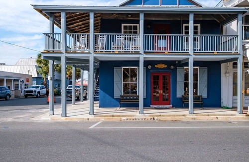 Come stay in this beautifully decorated apartment in a newly renovated historical building in downtown Cedar Key. "Kate" is a one bedroom and one bathroom unit fully equipped with a private bedroom with a queen sized bed, full bathroom with walk in shower, living room, kitchen, and laundry closet. The apartment is on the 2nd level of the historical Lutterloh building which now houses Main Street Mercantile. This unit includes unique touches such as a chevron wood ceiling made from repurposed wood from the original floor in the downstairs Mercantile. Private boat trailer parking behind building available for our guests.