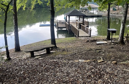 Take it easy at this unique and tranquil getaway. Perfect for couples looking to escape and unwind. This rustic cabin on beautiful Lake Wedowee has a pier and floating dock with year round water access. The property also has a jet ski slip, multiple fire pits, flat top grill and gas grill, charcoal grill at dock, portable ice maker, a spacious deck for entertaining or a great place to relax and enjoy the lake life.