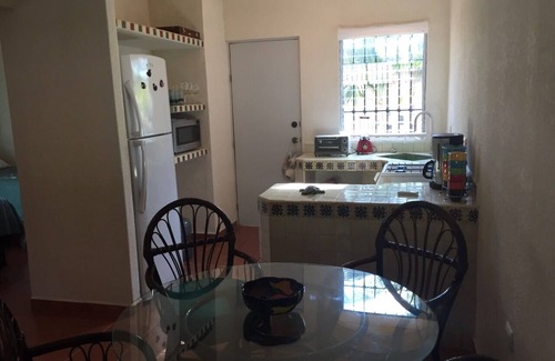 Casa Fuerte Brazo is located in the charming community of Chan Chemuyil on the Mayan Riviera. Walking distance from Xcacel Beach, a protected turtle sanctuary offering pristine sand and quiet waves away from the resort crowds perfect for snorkeling, swimming and relaxing. A short drive or bus ride to Akumal and Tulum, and a little farther to Coba and Chichen Itza - you can see the sights or just relax on the beach. Casa Fuerte Brazo has two bedrooms, one with a queen bed and the second with 2 twins. The living room has a full futon couch that sleeps two more. Sit under the palms in the back yard, or in the front with a beautiful jungle view. Air conditioning and ceiling fans in every room, wifi access, full kitchen and bath..