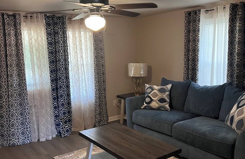This 1-bedroom apartment in Rockingham is perfect for your escape. With heating, AC, iron, and WiFi, guests can relax in the beautiful living room with a comfy sofa bed. It's easy to see why you'll be able to unwind at our place..
