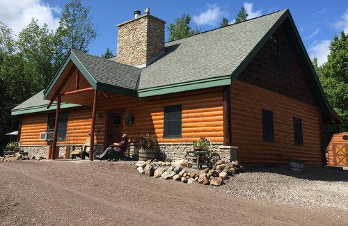 Follow the winding drive to our secluded house set in the middle of 20 wooded acres. Relax on the decks, walk the trails on the property or use this as a base for trips to Duluth or up the North Shore. There are two bedrooms on the main floor, each with a queen bed and plenty of dresser space. The first bedroom has a good size closet with built in dresser and place to hang clothes. The second bedroom has a separate exterior door leading to a newly built stamped concrete covered porch. Opposite the bedrooms and heading up the log staircase, you'll find a sitting area with a futon offering an additional full bed (if requested) and access to a second story deck, great for star gazing. There's an open floor plan large kitchen, dining and living area, offering seating for 6. The kitchen has a coffee maker, microwave, toaster oven, dishwasher, fridge w/ice maker, stove/oven and is stocked with all the essential non-food items. Internet is provided, as well as a small collection of DVDs and a TV in the main living area with another upstairs in the futon room. The claw foot tub/shower in the single bathroom is great for soaking/reading. Towels, bedding and throws (for chilly weather) are included. There is an additional shower stall in the utility room, along with the washer and dryer available to guests. Outdoors there's plenty of seating, a fire-pit and a charcoal grill. Wood, charcoal and grilling accessories are provided. There's a covered porch along the north side of the house and a small covered storage area to sit should it rain. Feel free to roam the property, though we'd recommend not trying to enter the small cabin or outhouse since it's likely some of the wildlife have moved in! We continue to expand the walking trails and hope to have a couple of miles meandering through the wooded property..