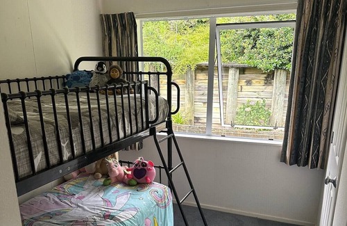 Bring the whole family to this great place with lots of room for fun.with 5.5 ha of bush an gentle stream an views of the fifth of Thames and the beach accross the road the peaceful setting of the house up a long driveway sitting on the hill with stunning views of the coromandel The firth of Thames offers some of the best snapper an kingfishing in nz.plenty of parking and the bayview hotel offers absolutely fabulous meals and a courtesy van is also available for a donation .WE ARE PET FIENDLY.