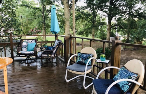 Small country Treehouse. Great for traveling Nurses or Contractors. Perfect for out of town guest! Upstairs has bedroom with queen bed, designated office area, bathroom with shower, small kitchen with gas stove and full size refrigerator. Full size couch, WiFi, Smart TV, and Keurig. Treehouse has another bedroom with a double bed. Also includes living area with Twin bed, Smart TV, WiFi, refrigerator, microwave, Keurig, outdoor sitting area, gas grill. Top and bottom share a bathroom located in upper portion of Treehouse. Maximum guest 4..
