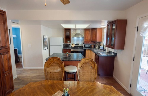 Clean, classic & pleasant retreat. 10 minutes to Horseshoe Bend, or Antelope Canyon. We'd like to welcome you to enjoy the luxuries of Sol Oasis & unwind in our newly redesigned home. Grill at sunset & have an outdoor meal before heading in to our 4k surround sound TV, play pool or darts, and finish on your tempur pedic bed. Only 10-minute walk to downtown supermarket/restaurants & the golf course/mesa trail. Fast WIFI , new washer/dryer & plenty of boat parking w/ security cameras, and TV's in the mess, basement & master..