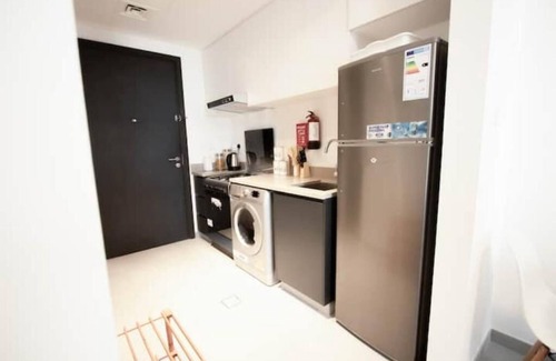 indulge in the perfect fusion of city living and comfort at our stylish studio apartment located in the lively east village of aljada, sharjah Tailored for solo travelers or couples seeking a contemporary retreat, our space is equipped with a full kitchen and exciting amenities. Just steps away from trendsetting cafés, parks, and cultural landmarks like Al Majaz Waterfront and Al Noor Masjid, our urban haven invites you to explore, indulge, and relax in style.