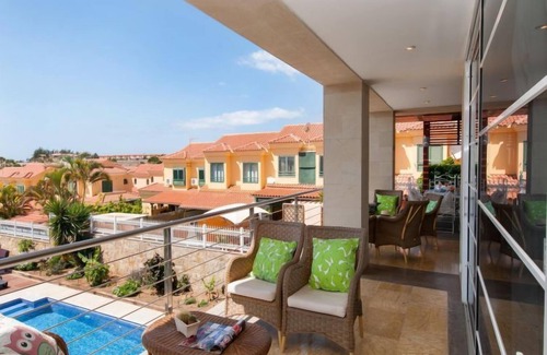 Large, comfortable single-family house. On the outskirts Maspalomas, in a quiet position. Private: garden (fenced) with lawn, swimming pool angular (11 x 5 m, depth 160 - 140 cm, seasonal availability: 01.Jan. - 31.Dec.). Outdoor shower, patio, garden furniture, barbecue. In the house: billiard table. Single garage, public parking on the road. Bus stop "Vistamar" 30 m. The owner does not accept any youth groups. Neighbourhood highly sensitive to noise. Quietness and good behaviour expected.