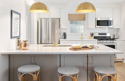 this newly updated home sleeps 6 guests and offers an open floor plan, light-filled rooms, elegant modern, décor, well-equipped kitchen, spacious dining room, and 3 bedrooms, 25 baths plus a cozy third floor loft.