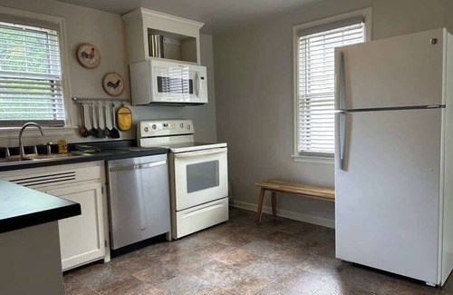 keep it simple at this peaceful and centrally-located place Clean and comfy with two bedrooms with queen beds and desks, one bath, full kitchen, dining room, and large living room in a quiet walkable historic neighborhood near downtown. A short drive to downtown, NDSU, Fargodome, Concordia College, MSUM, Scheels Arena, Sanford Health, Essentia Health, restaurants, and shopping. One off-street parking space plus street parking on a quiet one-way residential street.