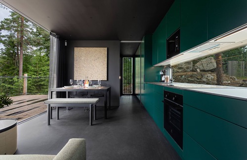 With 96 sqm of floor space including the terrace, high standard, fantastic comfort, and a room feeling you won't find anywhere else, you get a living experience that can be compared to staying at a luxurious hotel, in nature.