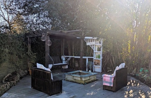 - south-facing private garden with inbuilt fire pit and two decked seating areas