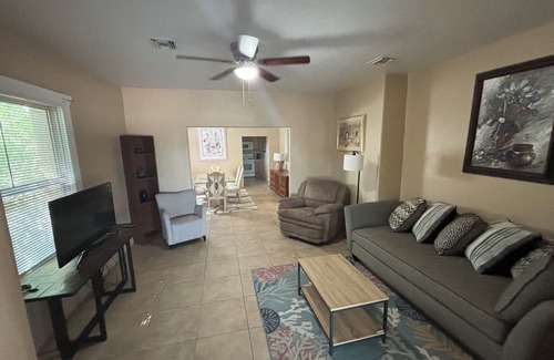 Nestled in the heart of Tucson, this delightful house offers superb accommodations for guests. With 4 bedrooms including 3 queen beds, 1 bunk bed, and 1 twin bed, this peaceful retreat is perfect for families or groups. Enjoy the convenience of amenities like a washing machine, WiFi, AC, and heating and a hot tub.The 2 bathrooms come equipped with a hair dryer and shower. With a large yard fully fenced in , off the street parking.You're sure to make fantastic memories with a stay at our place. No matter what you are visiting for, this home provides easy access anywhere anywhere you wanna go..