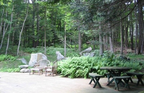 access to charming lake raponda, a tucked away lake, approximately 1/2 mile wide and 2 miles long Mountain View Association beach is sandy with gradual drop off, dock and swimming float. Five-minute walk on wooded path (see photo). Use of canoe and 2 kayaks.