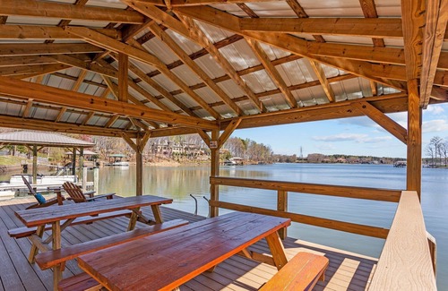 Relax at the newly renovated log cabin with beautiful views of Lake Norman. The calm waters are inviting for swimming, and the dock is perfect for your boat, jet skis, kayaks, and family picnics. Enjoy a nice dip in the hot tub.