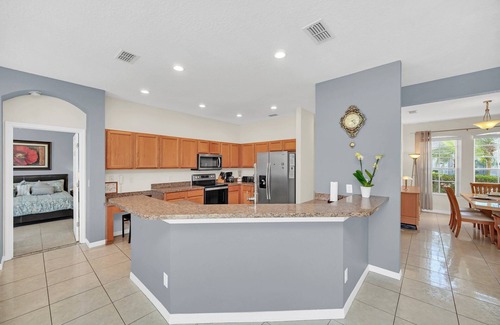 Highlands Reserve - Davenport, Florida is an upscale community located just 7 miles from Walt Disney World. This golf resort community sits nestled just outside of Orlando, Florida, and has quickly become one of the most desired resorts in the Orlando area. During your stay, you will enjoy this well-appointed home that has been designed and decorated to provide you and your family with an abundance of luxury amenities and leaves you well-equipped to vacation with all the usual items you would expect to find at home. Highlands Reserve is only a 30-minute drive from the Orlando International Airport and is situated central to all of Orlando’s famous attractions. The community is situated on the Highlands Reserve Golf Course. Amenities include a swimming pool, tennis courts, and a children's playground. This spacious 6-bedroom holiday villa can comfortably accommodate a larger family or group of up to 12 people.