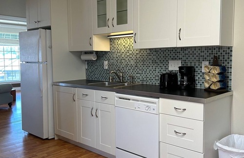 the full kitchen is ready for at home meals after a quick trip to the local grocery store or don't want to cook? walk next door to the restaurant for some local flare for lunch or dinner