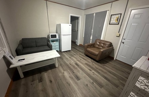 Clean and Comfortable oversized private 1 bedroom motel room with a separate cozy living room that has a sofa sleeper and kitchenette area. Located at the Sahara Club & RV Park, this roadside motel conversion has an on-site bar & grill with great menu that is open 7 days a week, laundromat, ice vending, rv park, fire pit area, and so much more! Just minutes from white water rafting and the Ocoee River, downtown Copperhill, and Ducktown. Also a short drive to Blue Ridge GA & Murphy NC!.