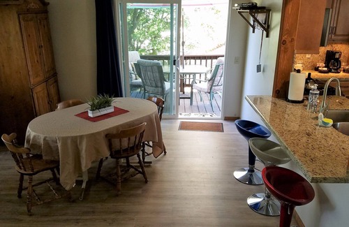 for your grilling pleasure, a bbq with propane is located on the deck right off the kitchen and family room You can enjoy your meal using the the patio furniture on the deck, nestled among the oak trees .