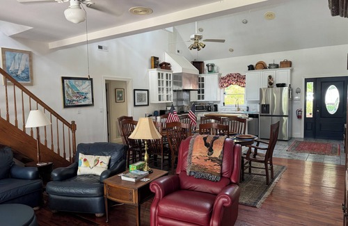 located in lake waccamaw, this delightful house is a dream With 4 bedrooms downstairs, including 2 king beds, 2 queen beds, a bunk bed, it offers a fabulous space for guests to relax and unwind. The house also features 2 bathrooms, complete with amenities like a hair dryer, bidet, and jetted bathtub. Additionally, there is an office with a full bed for any additional space needs. Whether you're enjoying the AC, using the iron or washing machine, or staying connected with WiFi, this beautiful property has everything you need for a wonderful stay. We hope you enjoy what our place and Lake Waccamaw has to offer..