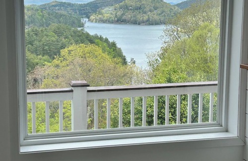 at 3700 feet overlooking spectacular lake glenville consider this well-appointed luxurious apartment your home away from home Only 5 minutes from Cashiers. Quiet and restful surroundings close to shopping, restaurants, golf, tennis hiking and waterfalls. Features 1 bedroom with a queen bed, a spacious living room with fireplace and a comfy queen sofa bed. Lake and mountain views from every room. Includes all the essential amenities like Wi-Fi, W/D, AC fireplace plus a 1 car garage. Kickback, relax, and enjoy everything Glenville and our apartment has to offer. small pets are now allowed!