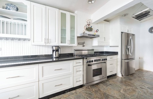 Experience Playa Juan Dolio like a local in this phenomenal 5-bedroom beach front villa. Each bedroom features a comfortable queen bed, ensuring a good night's sleep for all guests. With 6 bathrooms equipped with showers and hair dryers, getting ready in the morning is a breeze. This property also offers amenities like a cook to prepare your breakfast and lunch every day of your stay, washing and drying machines, AC, iron, and WiFi. Our place will help you feel at home while you're traveling in Playa Juan Dolio..