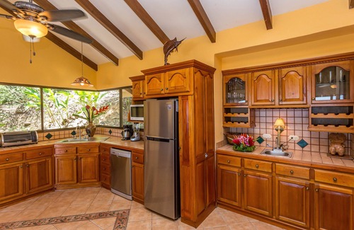 Casa de los Sueños is a 3 bedroom/2 bath home on 13 very private, quiet and secluded acres nestled beside a rainforest reserve in the Escaleras Mountains. The property offers spectacular views of the Pacific Ocean. View year round breath taking sunsets over the ocean from two of the three bedrooms, the great room and pool patio, since the back of the house faces due west. The house sits 1000 feet above sea level and is surrounded by lush rainforest and tropical gardens. Much of the terrain was reforested with native Costa Rican hardwoods, and fruit and flowering trees. There are ample opportunities to spot wildlife on the property such as toucans, white faced-monkeys, howler monkeys, scarlet macaws, coati, pavones, two-toed sloths, the rare ant-eater and the stunning morpho butterfly.
